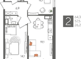 В продаже 2-комнатная квартира от застройщика! ЖК «Рекорд» 2 очередь, г. Краснодар, Литер 5 Срок сдачи: 2 кв. 2026, общей площадью 64.3 кв.м., на 24 этаже.
