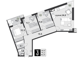 Срок сдачи: 4 кв. 2025, общей площадью 83.4 кв.м., на 16 этаже.