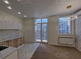 Планировка: кухня-гостиная с балконом, изолированная спальня, гардеробная, санузел с ванной, прихожая.