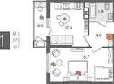 В продаже 1-комнатная квартира от застройщика! ЖК «Рекорд» 2 очередь, г. Краснодар, Литер 5 Срок сдачи: 2 кв. 2026, общей площадью 41.5 кв.м., на 9 этаже.