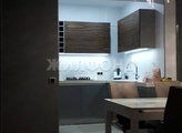 Кухонный ганитур сделан по индивидуальному заказу. Столешница из исскуственного камня.