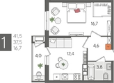 В продаже 1-комнатная квартира от застройщика! ЖК «Рекорд» 2 очередь, г. Краснодар, Литер 5 Срок сдачи: 2 кв. 2026, общей площадью 41.5 кв.м., на 9 этаже.