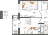 В продаже 1-комнатная квартира от застройщика! ЖК «Рекорд» 2 очередь, г. Краснодар, Литер 5 Срок сдачи: 2 кв. 2026, общей площадью 36.2 кв.м., на 18 этаже.