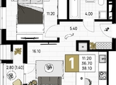 Общая площадь квартиры — 38.1 кв.м. Тип дома — монолит-блок. Компания-застройщик — ССК.
