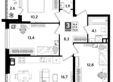 В продаже 3-комнатная квартира от застройщика! Мкр. «DOGMA PARK» г. Краснодар, Литер 19 Срок сдачи: 1 кв. 2026, общей площадью 68.4 кв.м., на 8 этаже.