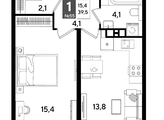 В продаже 1-комнатная квартира от застройщика! Мкр. «DOGMA PARK» г. Краснодар, Литер 13 Срок сдачи: 1 кв. 2026, общей площадью 39.5 кв.м., на 8 этаже.