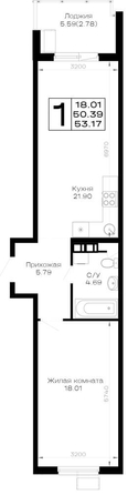 Жилая площадь 18.01 м2, кухня 21.9 м2, предчистовая отделка, комнаты изолированные.