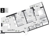 Срок сдачи: 4 кв. 2025, общей площадью 89.8 кв.м., на 4 этаже.