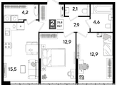 В продаже 2-комнатная квартира от застройщика! Мкр. «DOGMA PARK» г. Краснодар, Литер 15 Срок сдачи: 1 кв. 2026, общей площадью 59.5 кв.м., на 2 этаже.