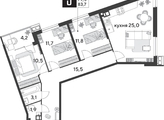 Срок сдачи: 4 кв. 2025, общей площадью 83.7 кв.м., на 6 этаже.